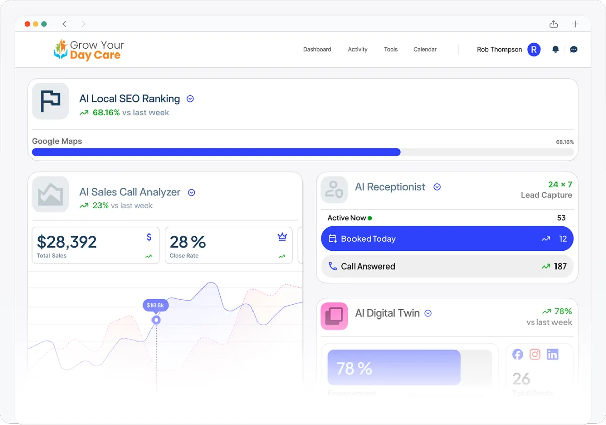 At Grow Your Day Care we help local businesses dominate their market, capture every opportunity, and scale without adding overhead. Using AI that works 24/7